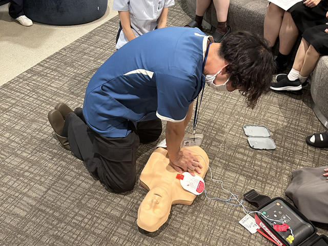 全職員を対象に心肺蘇生法およびAEDの使用方法を学びました。
